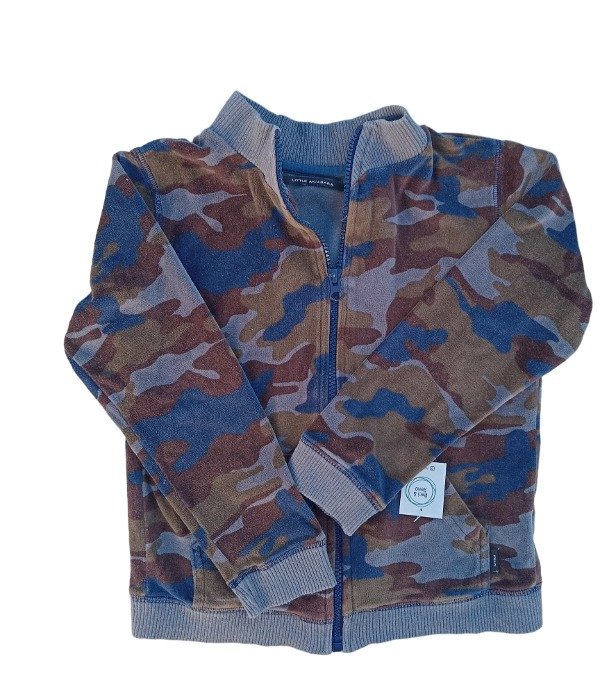 Buzo de algodón (plush) con bolsillos y cierre. Pretina en mangas, cuello y cintura