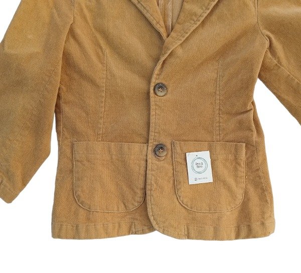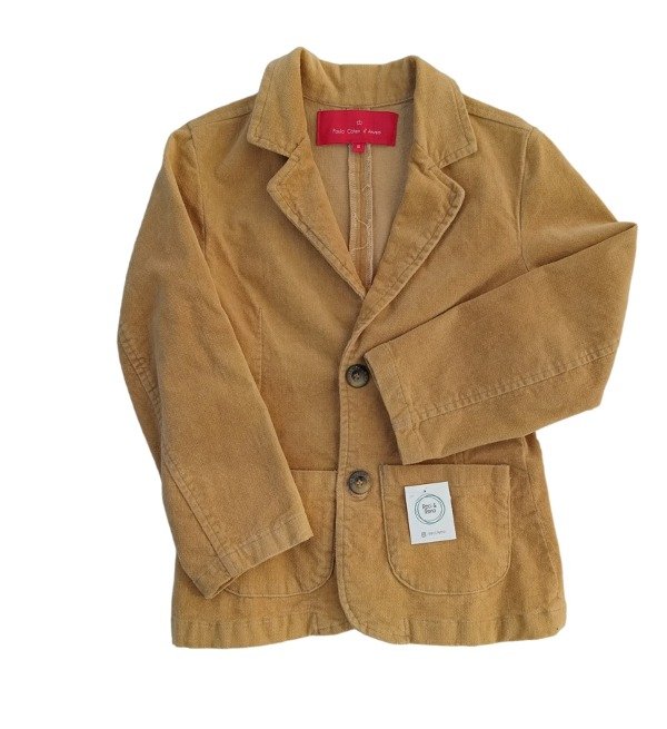 Blazer de paño color tostado con botones y bolsillos. Pinzas delanteras y traseras.