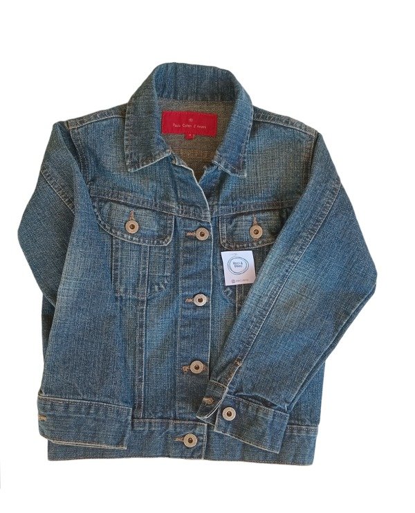 Campera denim con botones y bolsillos delanteros.