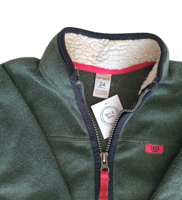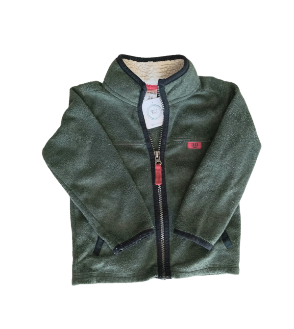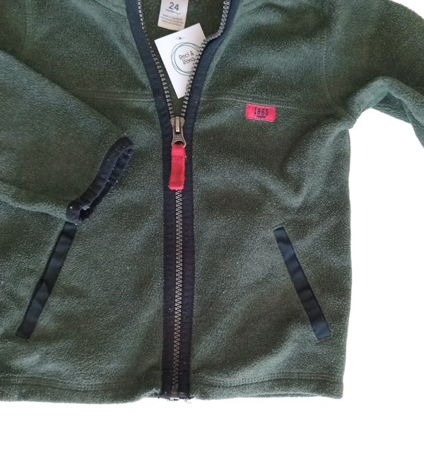 Campera de polar.Tono verde oscuro.Cierre y bolsillos.Cuello cubierto con corderito