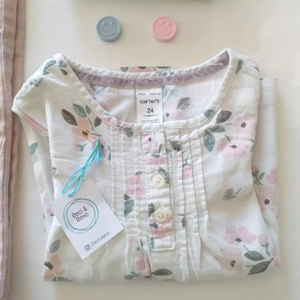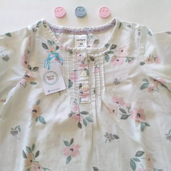 Blusa de algodón, manga larga estampada, botones y tablitas en parte superior