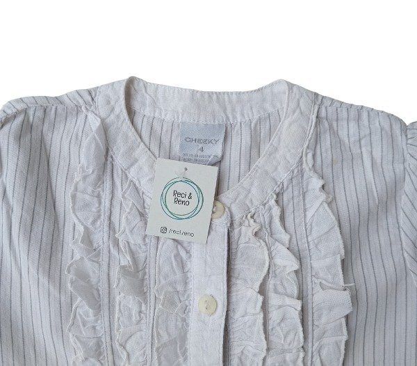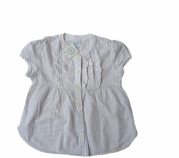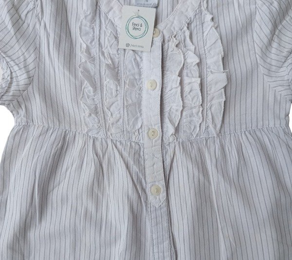 Camisa de algodón con botones y javot manga corta.Cuello a la base y corte en la cintura.