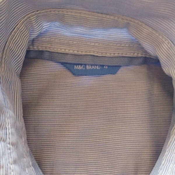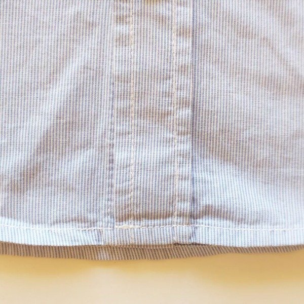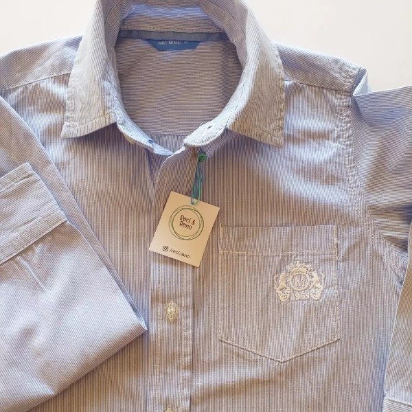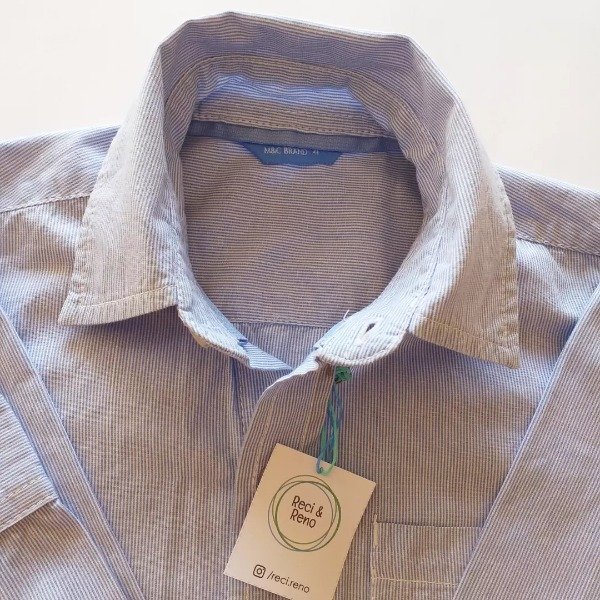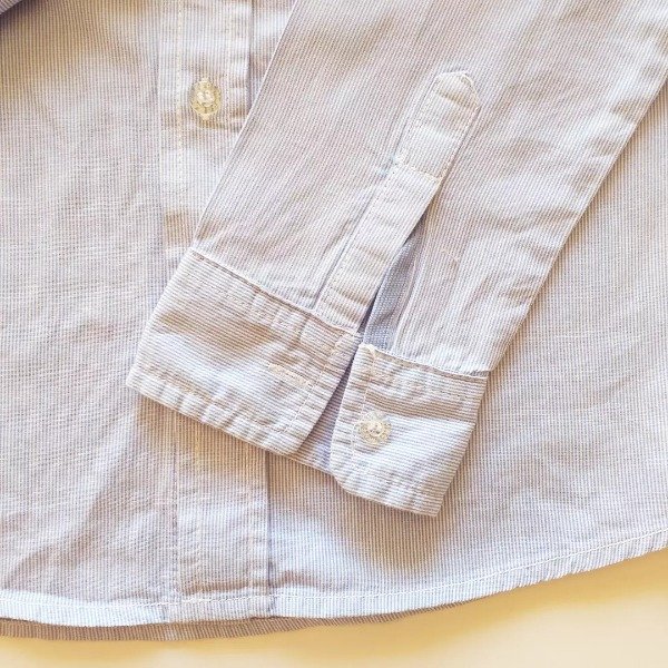 Camisa de algodón rayada.Color celeste con blanco.Botones en parte frontal y en puños.