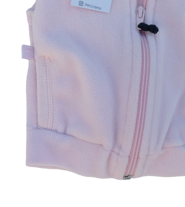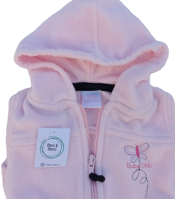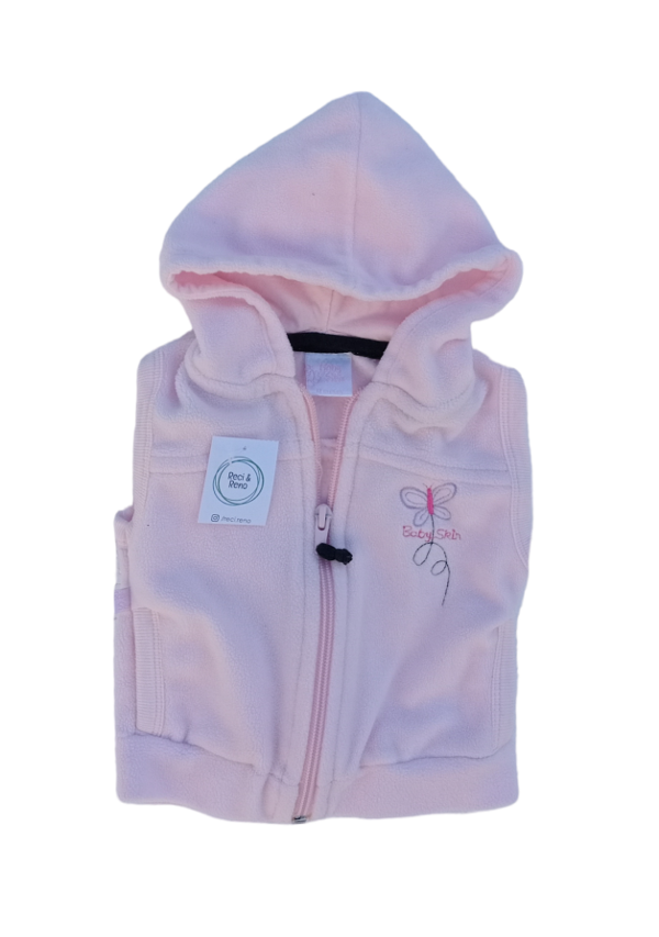 Chaleco polar con cierre, capucha y bolsillos laterales.
