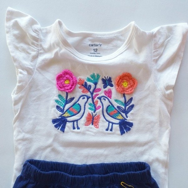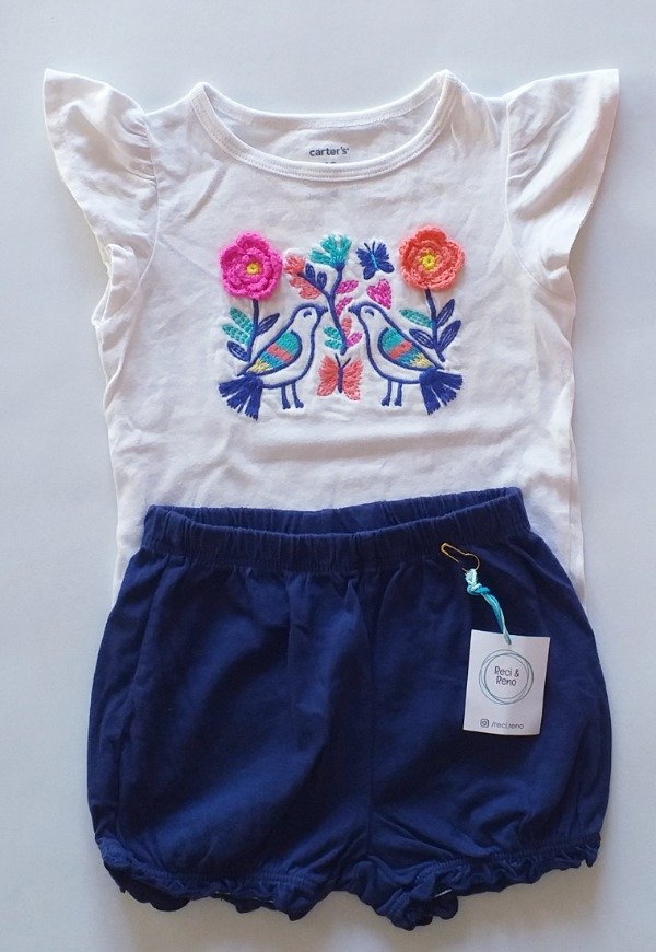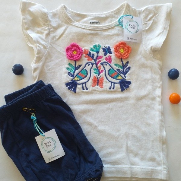 Conjunto de algodón con remera bordada y short tipo bombachón.