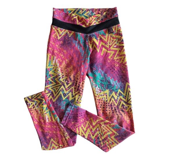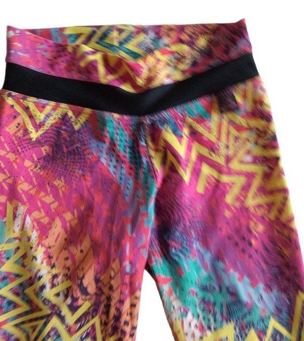 Calza de lycra con pandex estampada. Medidas; Largo 77 cm. Cintura parte elastizada; 25 cm. Ancho de cintura parte no ajustable; 28 cm