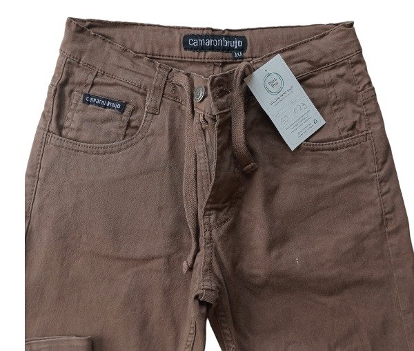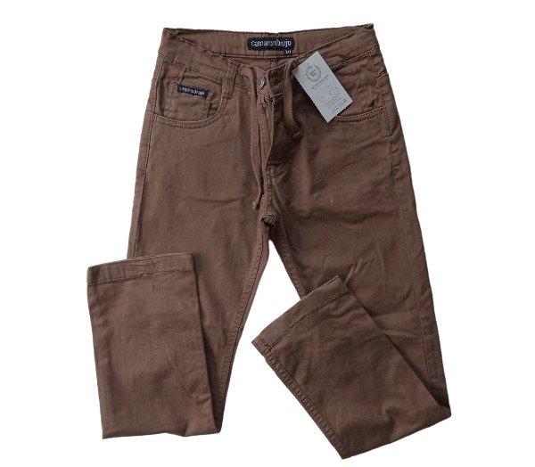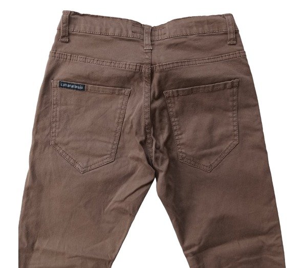 Pantalon de gabardina con boton, cierre y cordon ajustable. Bolsillos laterales delanteros y traseros.