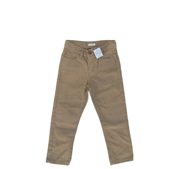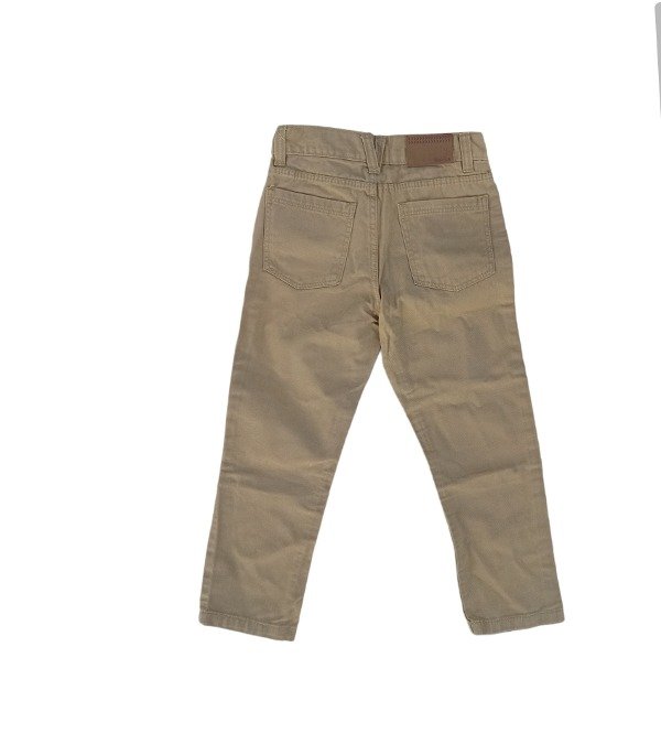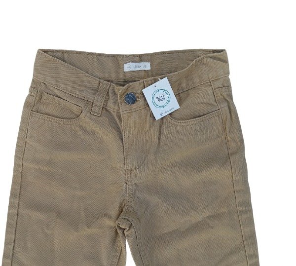 Pantalón de gabardina con botón, cierre y bolsillos, corte varón. Tono chocolate.