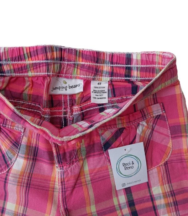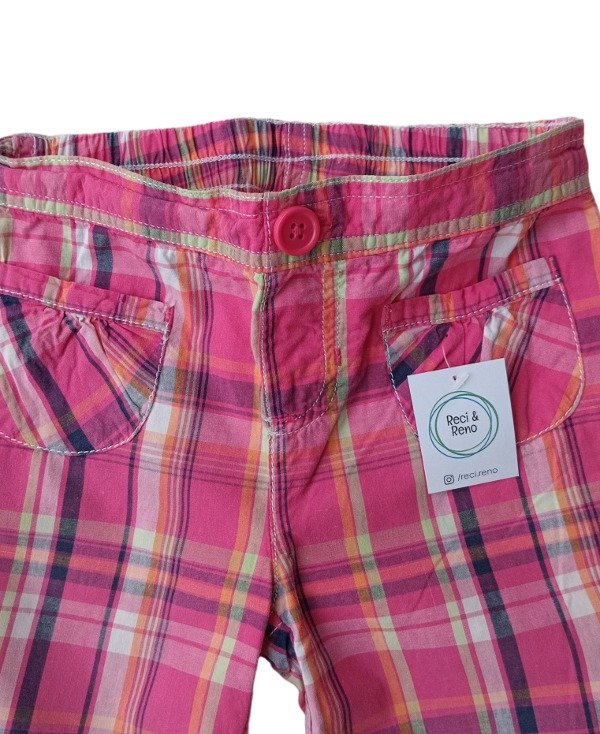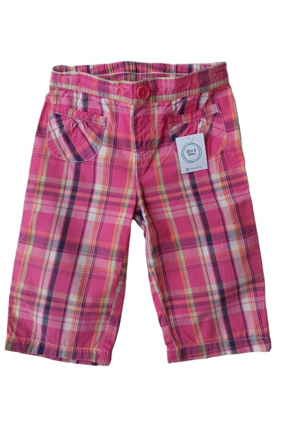 Pantalón escocés de algodón liviano. Cintura con elástico, botón y dos bolsillos en parte delantera.