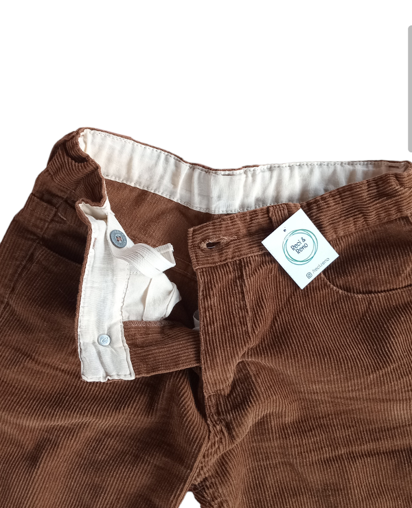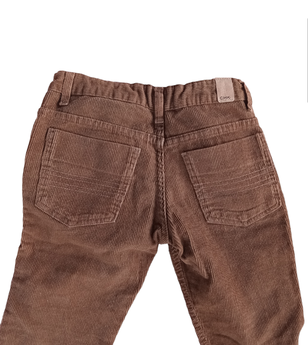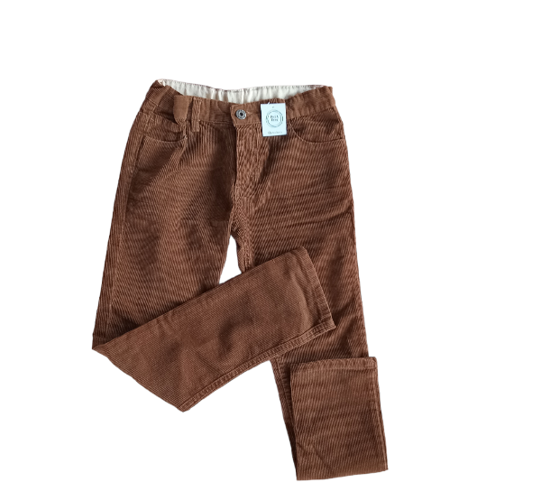Pantalón de corderoy tono marrón. Cintura ajustable. Corte varón.