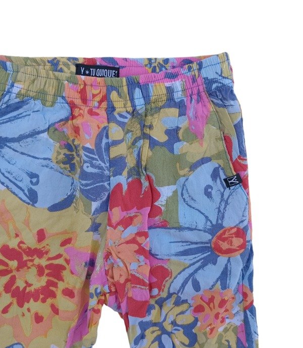 Pantalon estampado liviano de algodón con cintura elastizada.