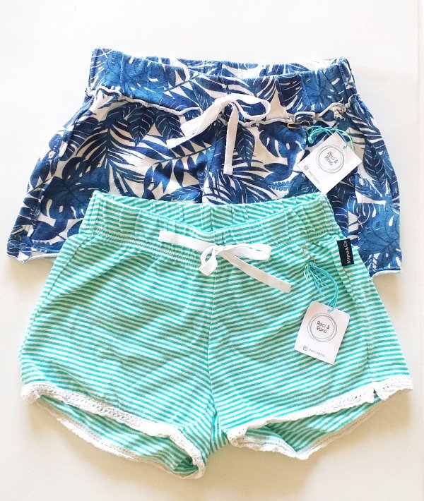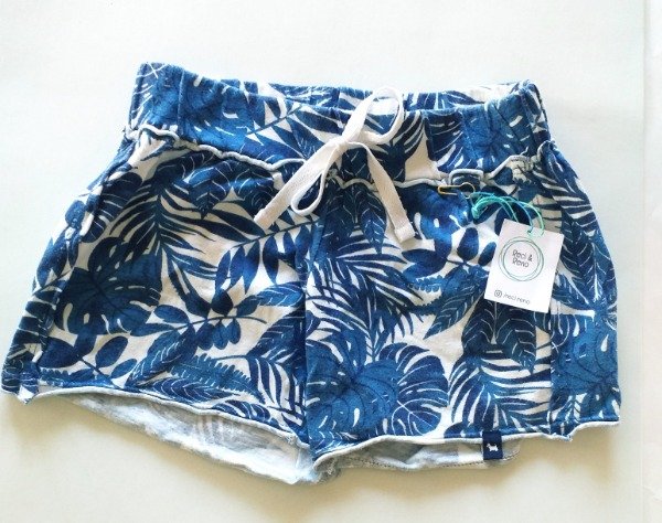 Short de algodón, estampado azul y blanco, cintura con elástico y cordón