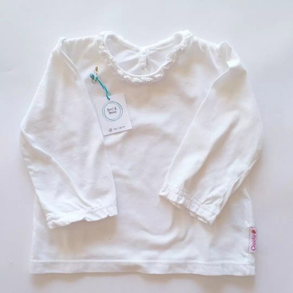 Remera de algodón manga larga Puños con elástico. Escote a la base con detalle.