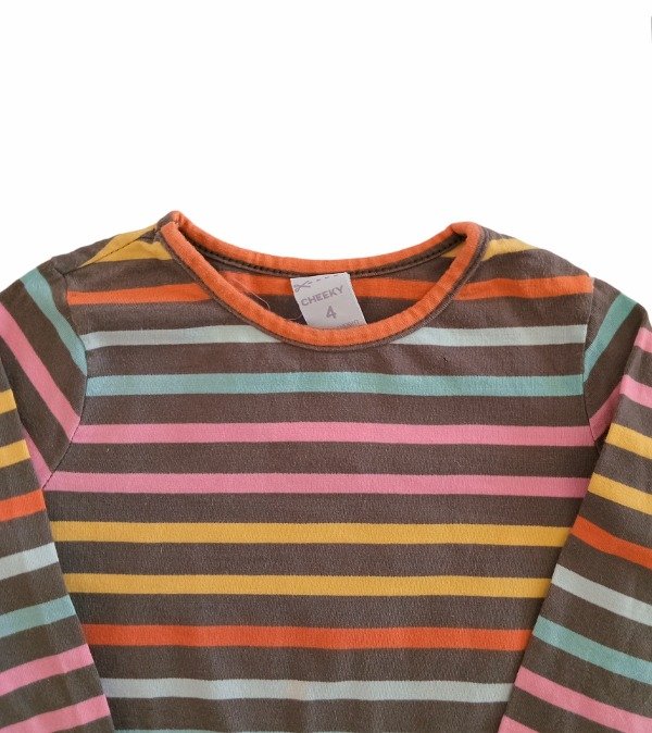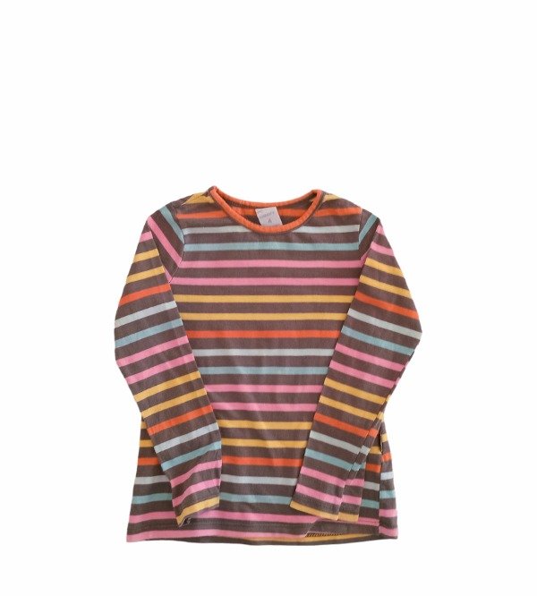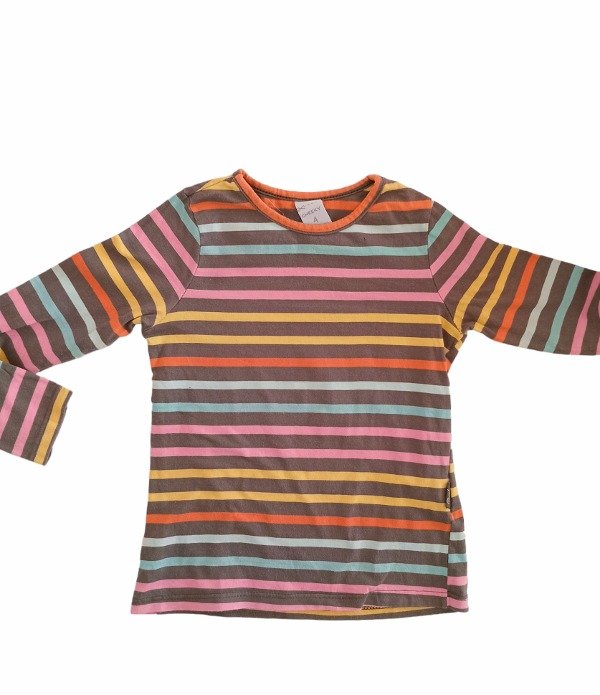 Remera de algodón manga larga, escote a la base, rayada en colores.