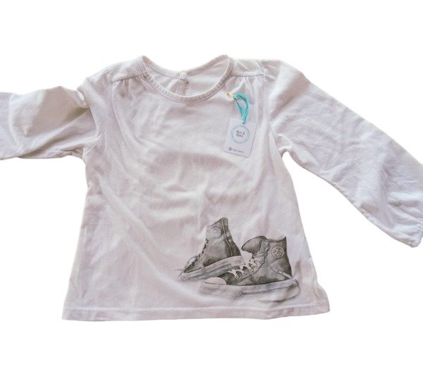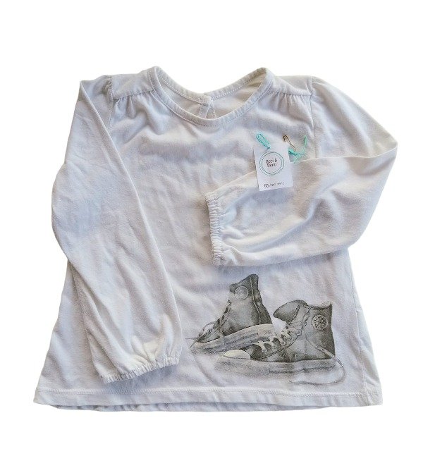 Remera de algodón manga larga, botón espalda para mejor ingreso