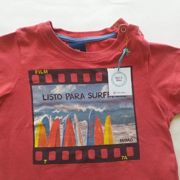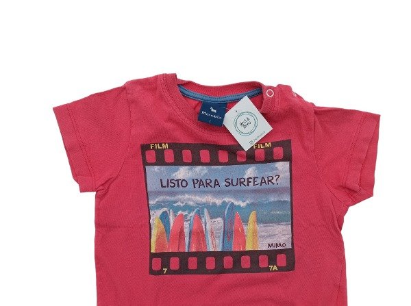 Remera de algodón manga corta.Estampa en parte frontal.Botones clip en cuello para facilitar ingreso.