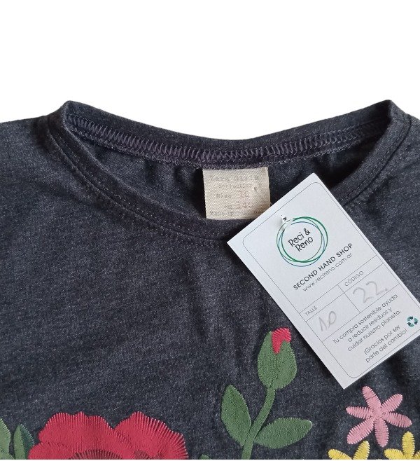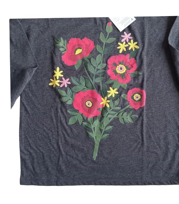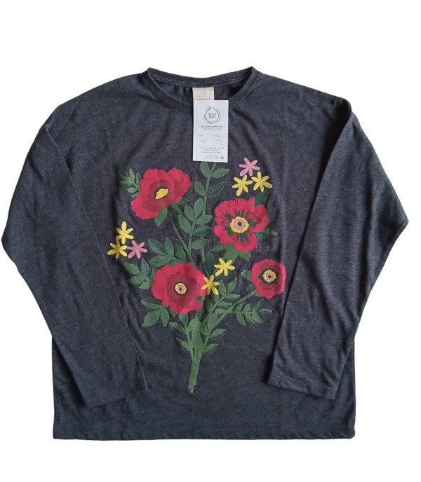 Remera de algodón con flores manga larga, Cuello a la base. SIN USO