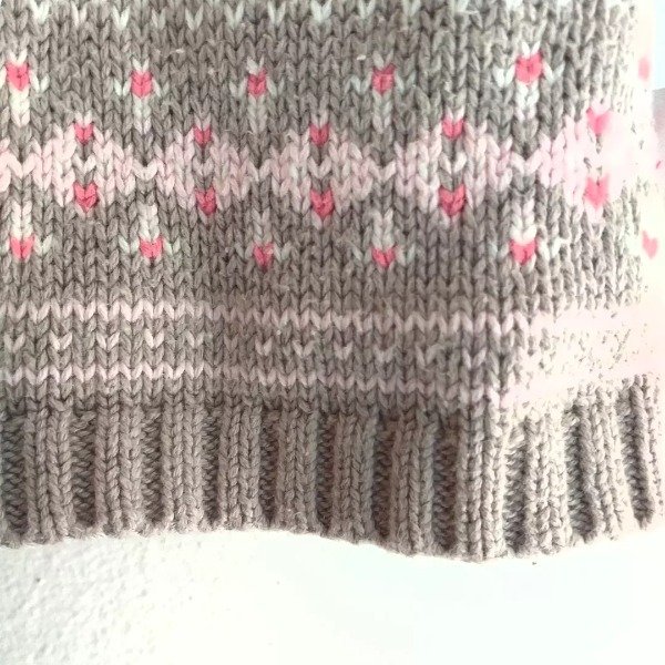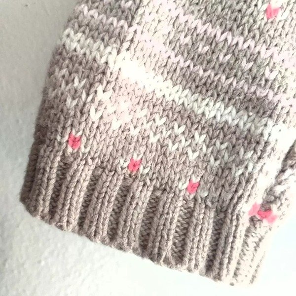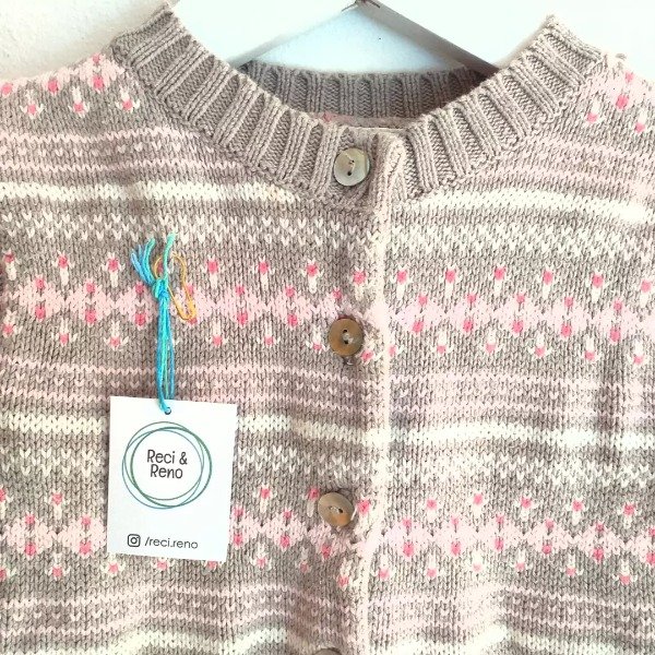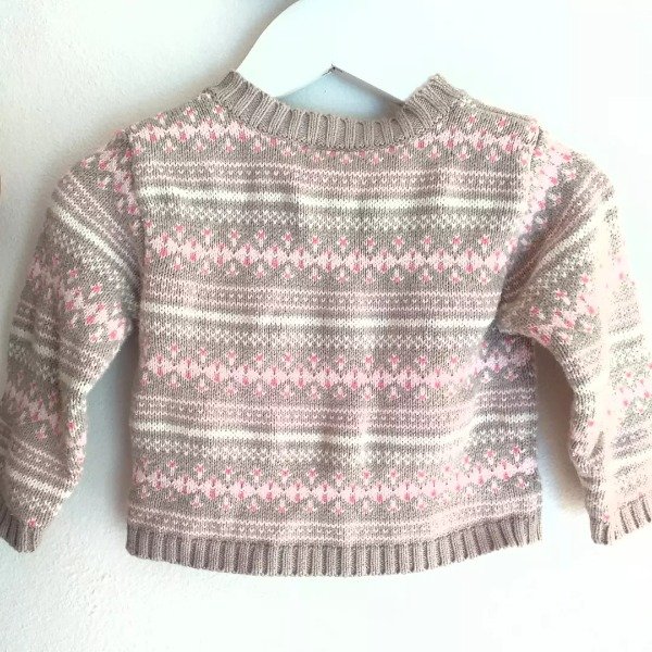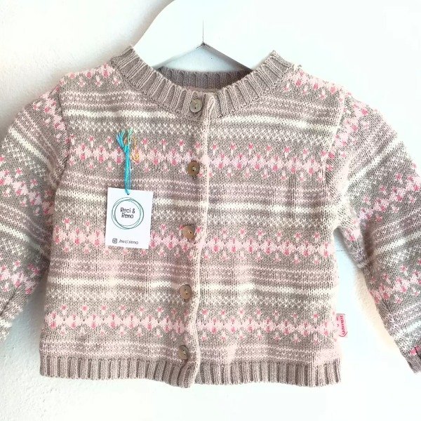 Campera de hilo grueso en tonos beige y rosa.Cerramiento con botones.