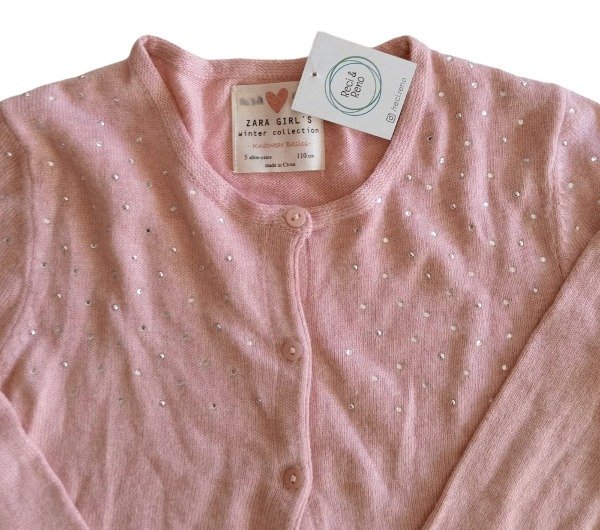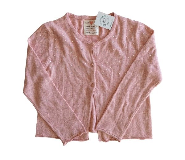 Saquito de lana con strass en parte delantera en tono rosa viejo. Confección pequeña y al cuerpo