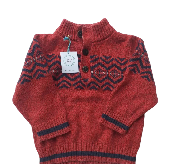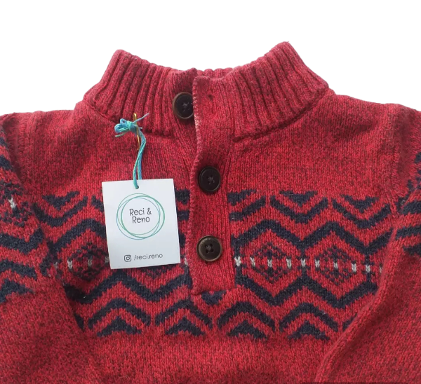Sweater de lana, Cuello alto con botones, Pretina en mangas y puños.