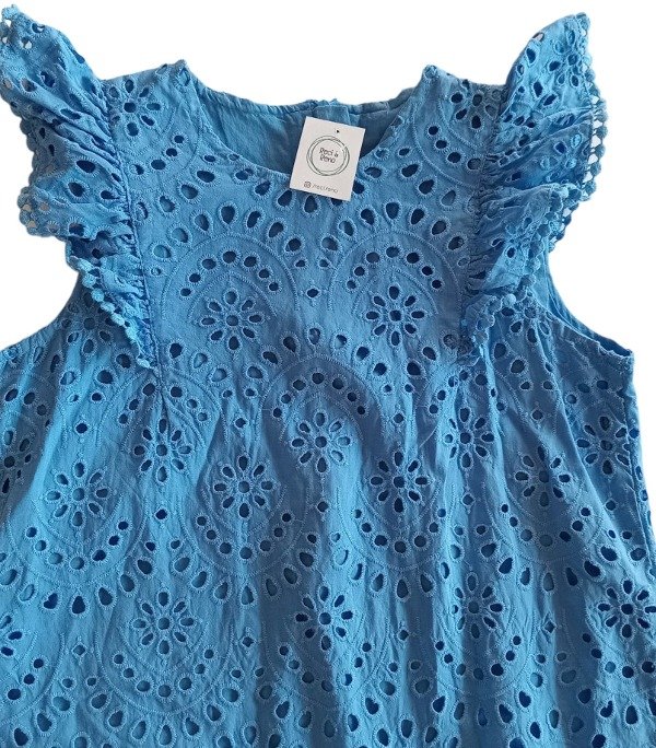 Vestido de algodón (broderie)l. Manga con volado y cierre en parte trasera para cómodo ingreso.