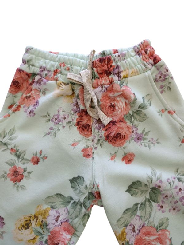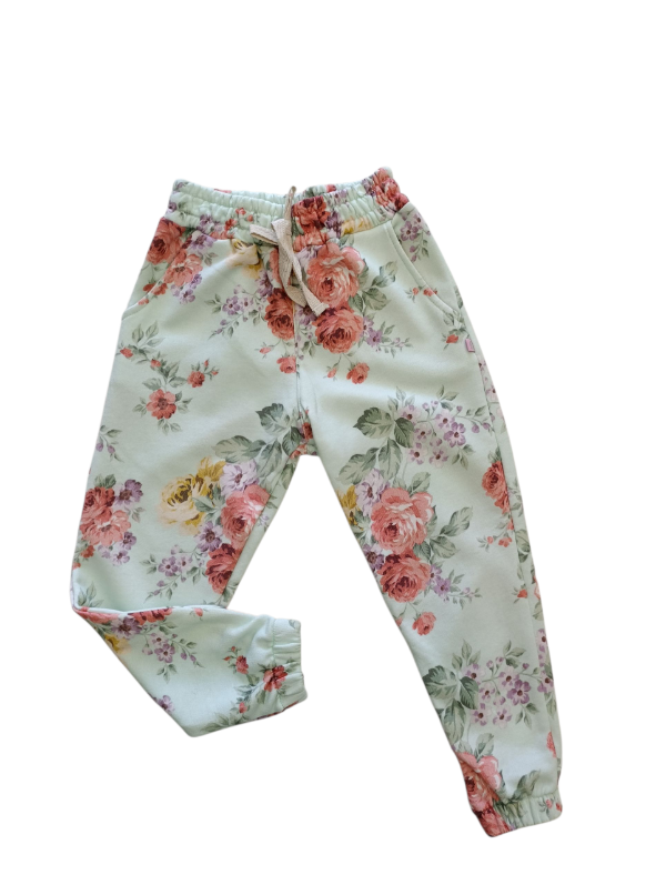 Pantalon de algodón verano estampado, fonde celeste, con cintura elastizada. Prenda nueva