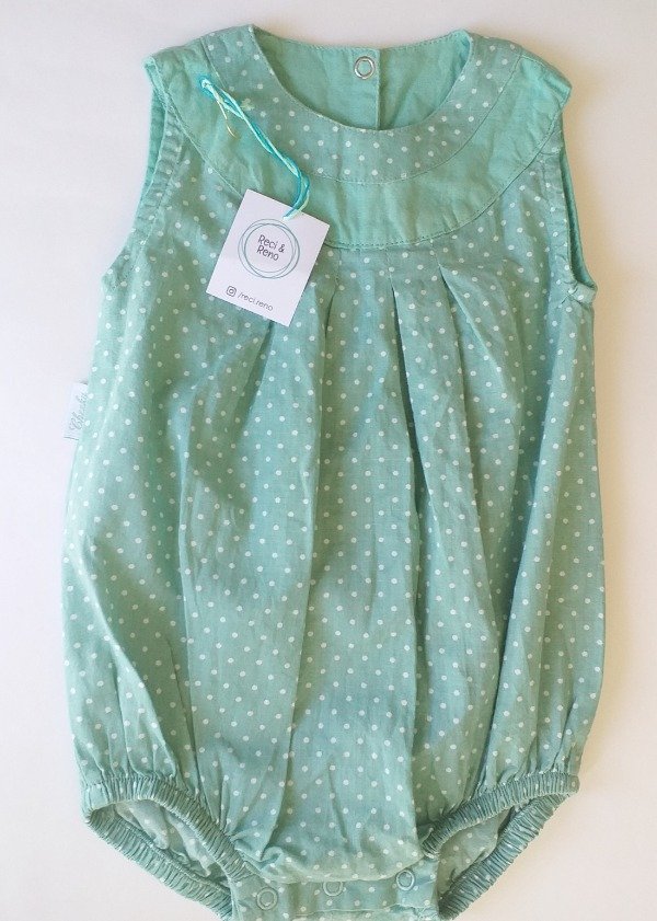 Body de algodón, amplio, pinzado, botóones snap en parte inferior y espalda para práctico cambiado
