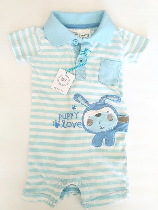 Body de algodón estampado, cuello polo con botones para mejor ingreso. Botones snaps en piernas para mejor cambiado.