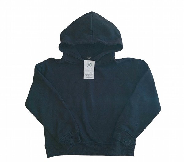 Buzo tipo canguro con friza, liso, negro.