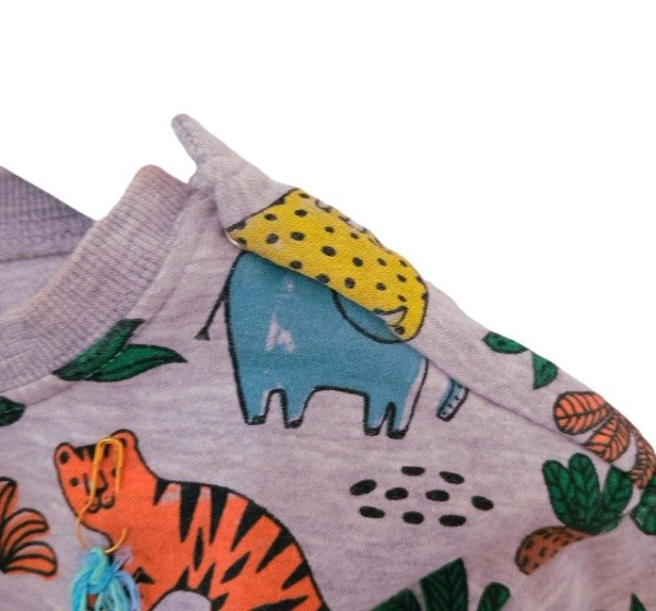 Buzo de algodón animales, botones snaps en el cuello para mejor ingreso