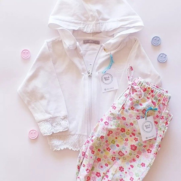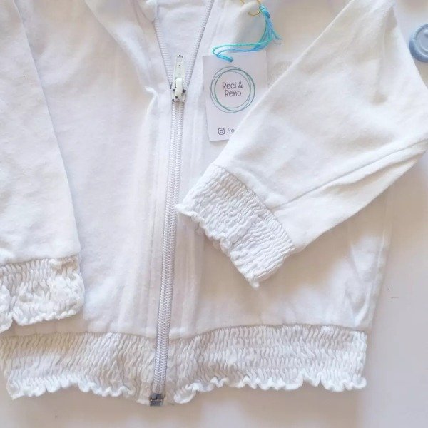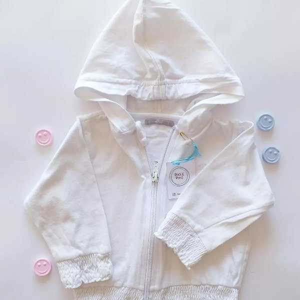 Buzo de algodón, cierre y capucha. Pretina con elástico en mangas y cintura
