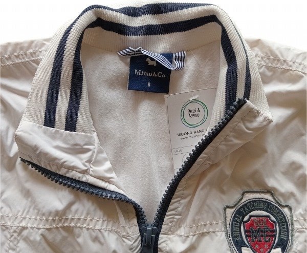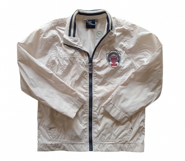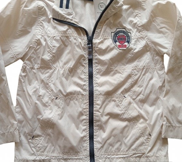 Campera con cierre y bolsillos tipo impermeable. Cuello con pretina.
