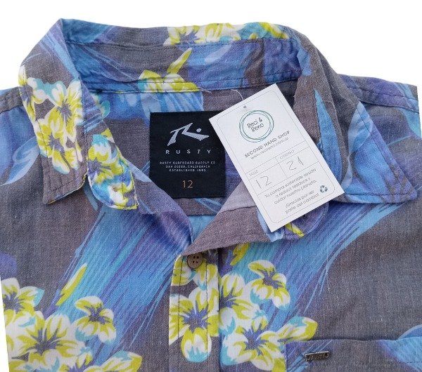 Camisa estampada manga corta con bolsillo lateral.