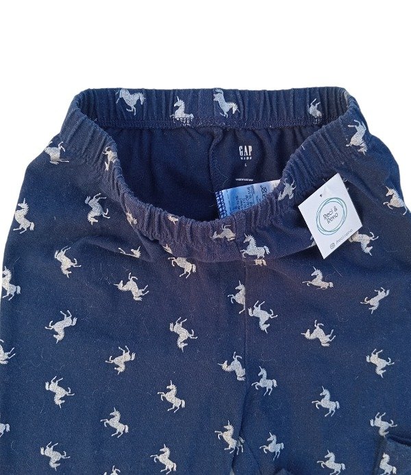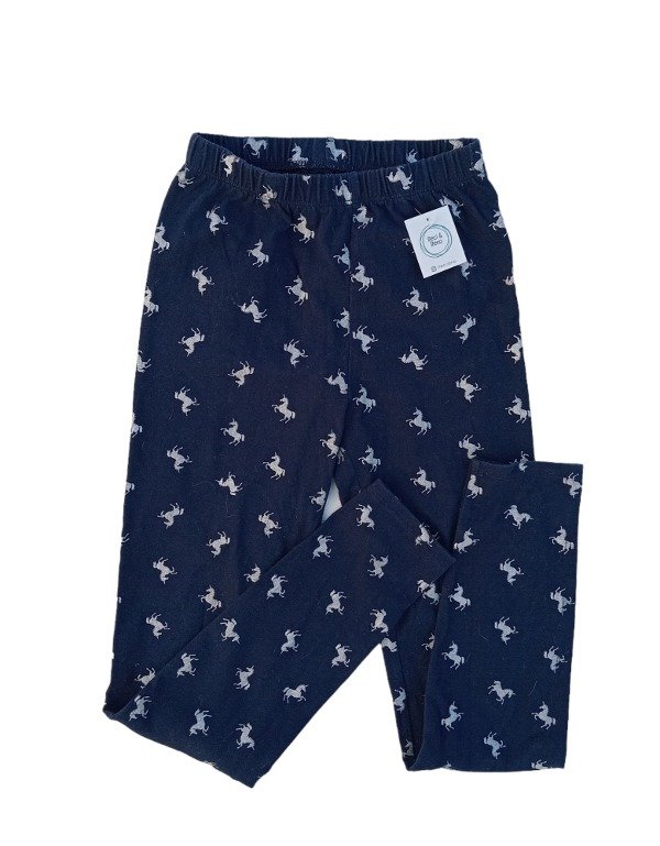 Calza de algodón con spandex. Cintura elastizada. Tonos azul oscuro y plateado. Medidas: Largo 80 cm. Cintura 24 cm.