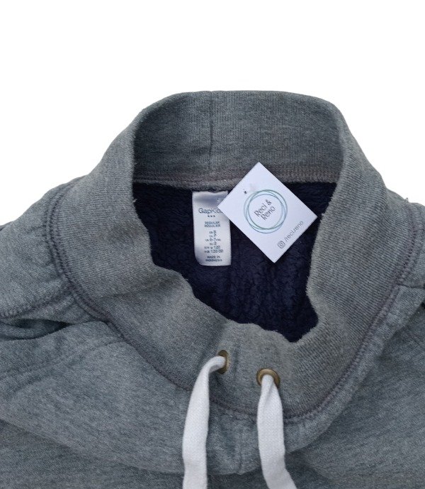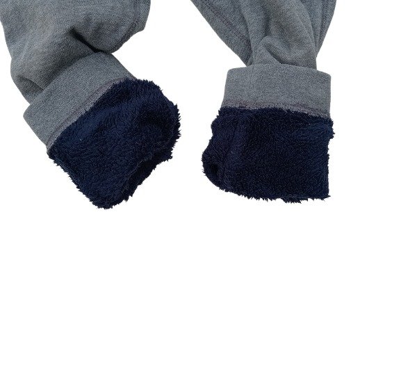Jogging de algodón, Cintura ajustable. Bolsillos laterales y uno en parte trasera. Abrigo con peluche o teddy en su interior en tono azul marino que cubre el 100% de la prenda. Tono Gris plomo. Estado; excelente.