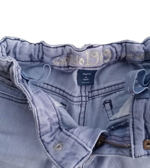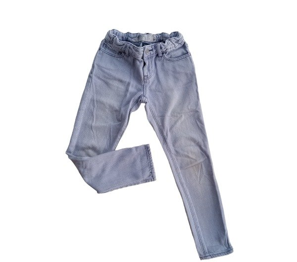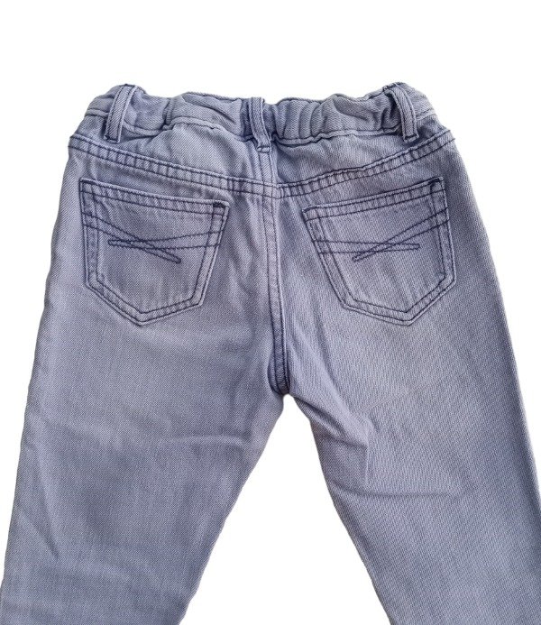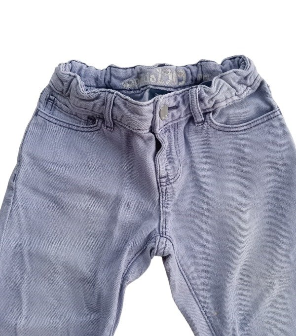 Pantalón de jean con botones, cierre y bolsillos delanteros y traseros.