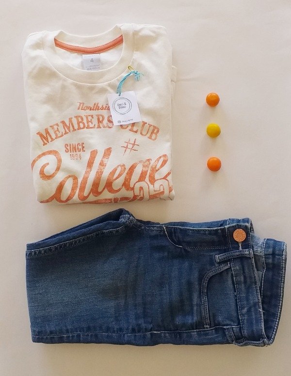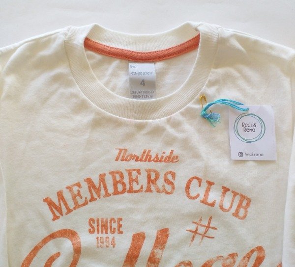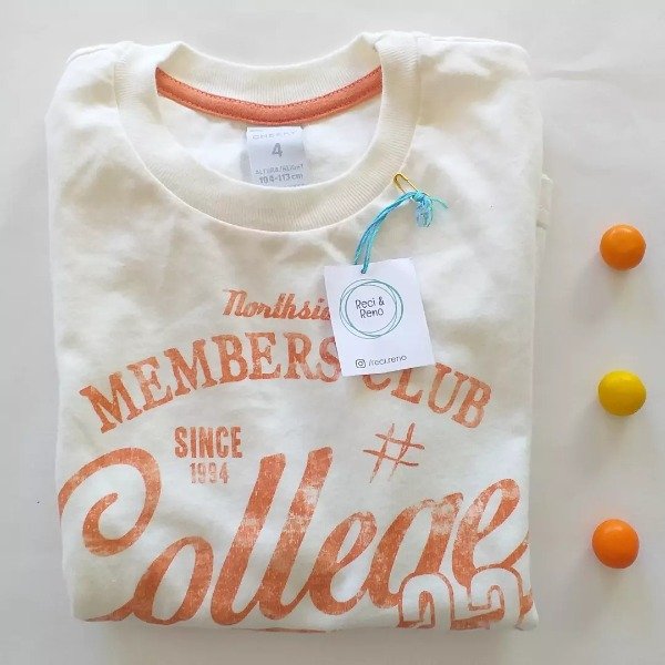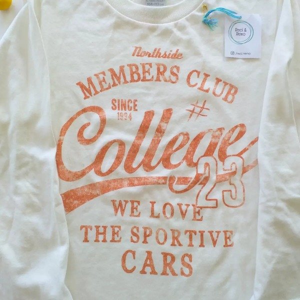 Remera de algodón manga larga. Cuello a la base. Color manteca con estampa.