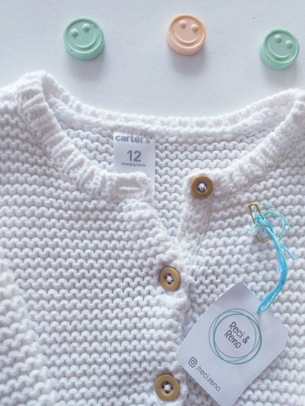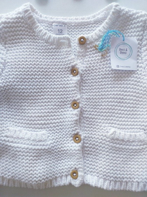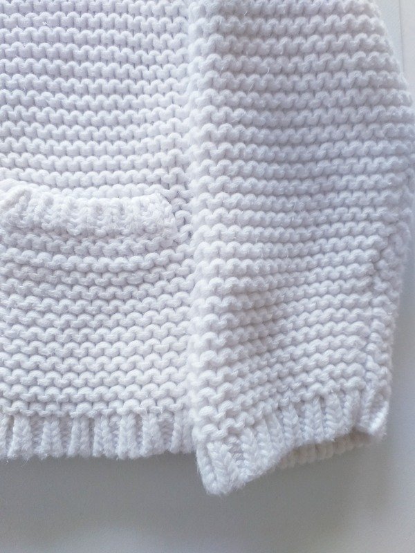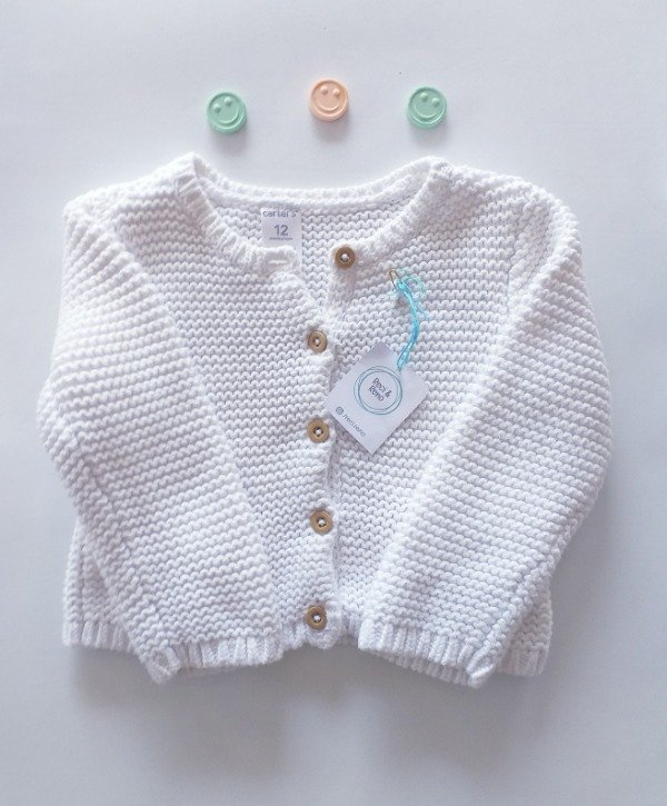 Saquito de hilo blanco con botones y bolsillos..Cuello a la base.