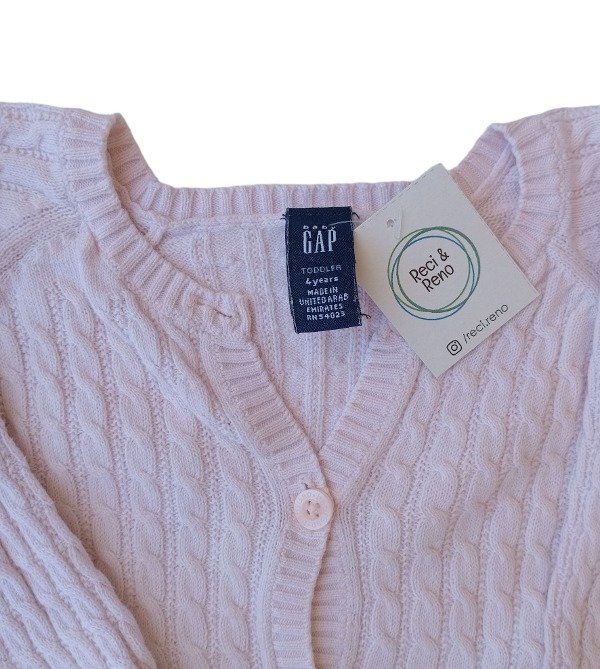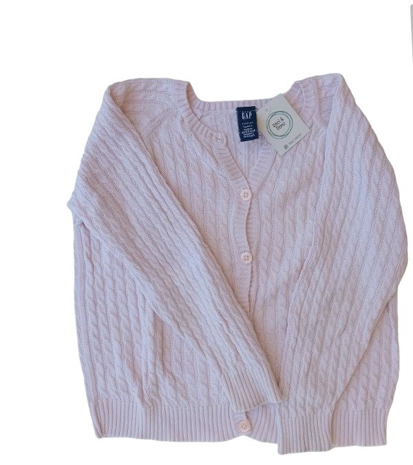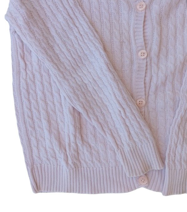 Sweater clásico de media estación con botones y trenzado, Escote a la base. Tono rosa bb.