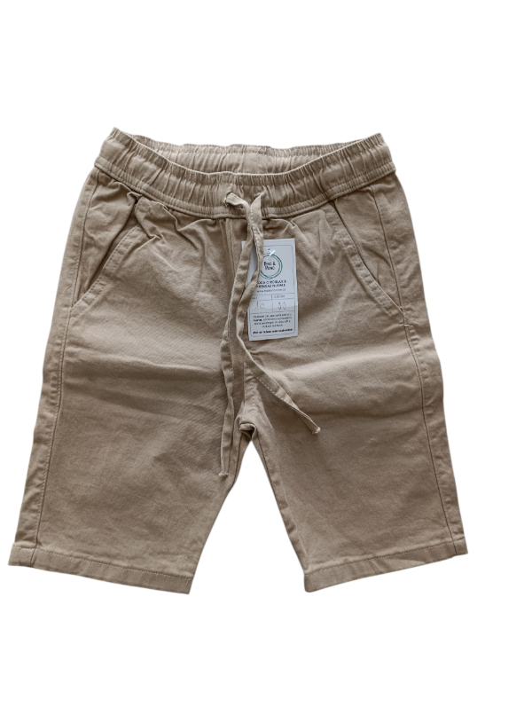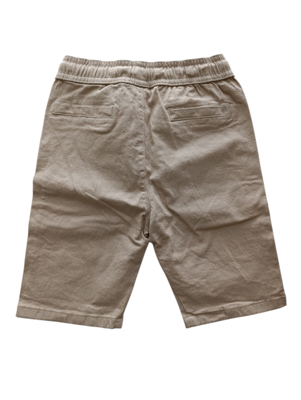 Bermuda de gabardina con cintura elastizada y cordon. Bolsillos laterales y traseros