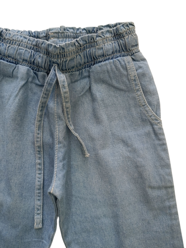 Pantalón de jean de verano con cintura elastizada y cordón. Modelo ancho